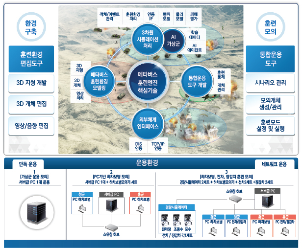 창조21·전투21 성능개량모델과 LVC 연동훈련체계를 통합하여 다양한 수준의 전투지휘 및 전술훈련을 지원하는 체계입니다.